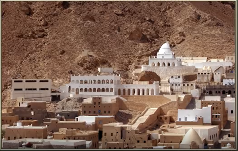 Resimde gördüğümüz yer Karyet-ül Hud. Resmin üst tarafında gördüğünüz bina ise Hz. Hud a.s.’ın türbesi olarak biliniyor. Tabi bu ne kadar doğrudur bilemiyorum. Ama Hz. Hud a.s.’ın başka yerlerde de kabrinin olduğu söyleniyor. Bizim tarihi rivayetleri bir araya getirip okuduğumuz zaman en sağlam beyan olarak burası görünüyor.